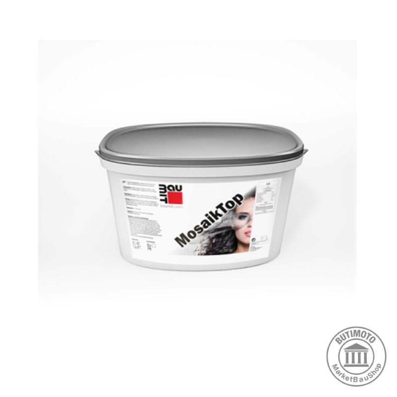 | Primjena proizvoda | Struktura nanošenja: 1 x Baumit UniPrimer (po cijeloj površini!), 1 x Baumit MosaikTop Uobičajeno sve podloge treba prethodno obraditi univerzalnim predpremazom Baumit UniPrimer (vrijeme sušenja: minimalno 24 sata). Baumit MosaikTop temeljito promiješati spororotirajućom miješalicom. MosaikTop izvući na debljinu granulacije nehrđajućom čeličnom zidarskom žlicom i još dok je mokra zagladiti uvijek u istom smjeru i bez šupljina (nakon nanašanja, najbolje je odmah površinu još jednom pomno pregledati i eventualne šupljine popuniti). Ne miješati s drugim materijalima. Raditi ravnomjerno i bez prekida. |