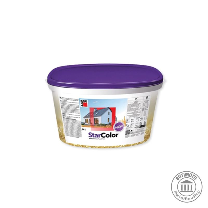| Primjena proizvoda | Baumit Star Color lagano promiješati sa spororotirajućom mješalicom. Razrijediti s maksimalno 10 - 15 % vode i nanijeti na cijelu površinu (vrijeme sušenja: minimalno 12 sati). Jako upojne ili kredaste površine obavezno tretirati proizvodom Baumit MultiPrimer. Ovisno o vremenu, ali najranije 12 sati nakon grundiranja ovisno o površini jednom do dva puta premazati bojom Baumit StarColor. Kod dvostrukog premaza između radnih koraka treba proći vrijeme sušenja od najmanje 4 sata. Ne smije se miješati s drugim sredstvima za premazivanje. Baumit Star Color se može nanositi valjkom, četkom ili bezzračno s odgovarajućim uređajem. Raditi ravnomjerno i bez prekida. Struktura sustava: slabo upojna površina koja se ne mora učvrstiti: 1 x Baumit Star Color razrijeđena s maks. 10 - 15 % čiste vode ( premazati po cijeloj površini!) 1 - 2 x Baumit Star Color, (max do 5% razrjeđeno s vodom) Trusne, vrlo upojne površine , stare fasade sa ( ili bez ) povezanim sustavom za toplinsku izolaciju : 1 x Baumit MultiPrimer 1 - 2 x Baumit StarColor (max. 5 % razrjeđeno s vodom) Nanošenje bezzračnim raspršivačem: npr.Graco UM II 795 PC Mlaznica: LL5321 ili LL315; tlak 90 bara Filter:60; Razrjeđivanje 0%. |