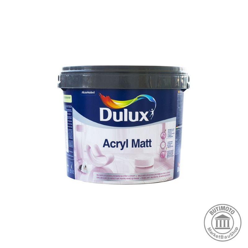 | Značajke proizvoda | Dulux Acryl Mat je visokokvalitetna mat disperzijska boja za unutarnje zidove i stropove, poznata po vrlo dobroj pokrivnosti, jednostavnom radu i otpornosti na vlažno brisanje. |
